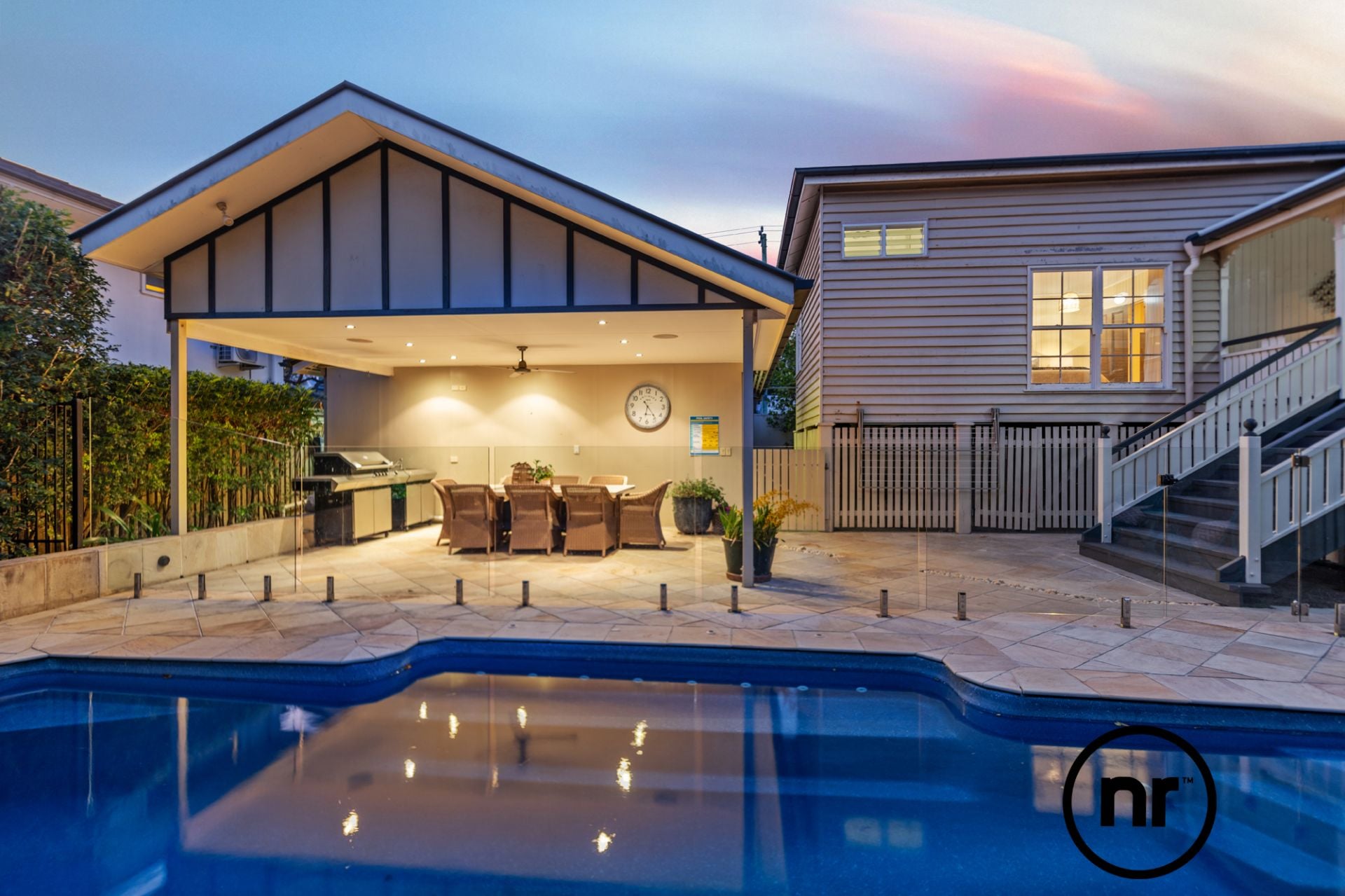 Not to be outshone, the master bedroom, an exquisite sanctuary, offers a stunning view of the radiant backyard oasis. Immerse yourself in the recently renovated ensuite which is a testament to modern elegance highlighted by subway tiles, a spacious basin and contemporary shower facilities. Adding to the appeal of this home is the fact it is replete with conveniences from ceiling fans throughout and impeccable cross-flow ventilation to zoned ducted air-conditioning and a spacious home office. Furthermore, abundant storage solutions keep the living spaces clutter-free and integrated SONOS in-speaker ceilings in every bedroom and the formal lounge offer a tech-savvy soundscape. Step outside to relish Queensland’s year-round climate in the exceptional entertainment area. With a seven metre pool, beautifully tiled patio and a multi-burner barbeque, this is one of the all-time great backyards to unwind at.