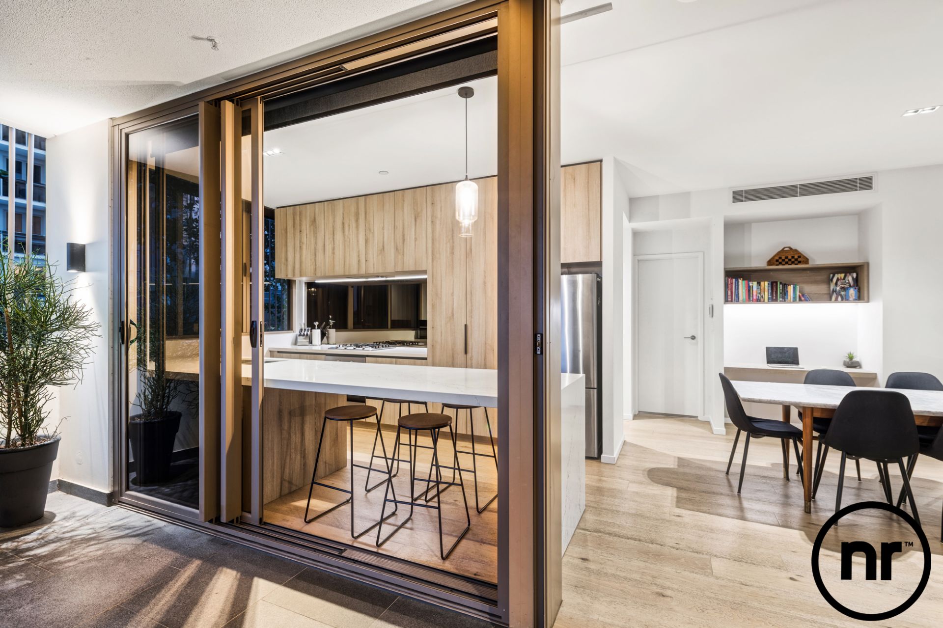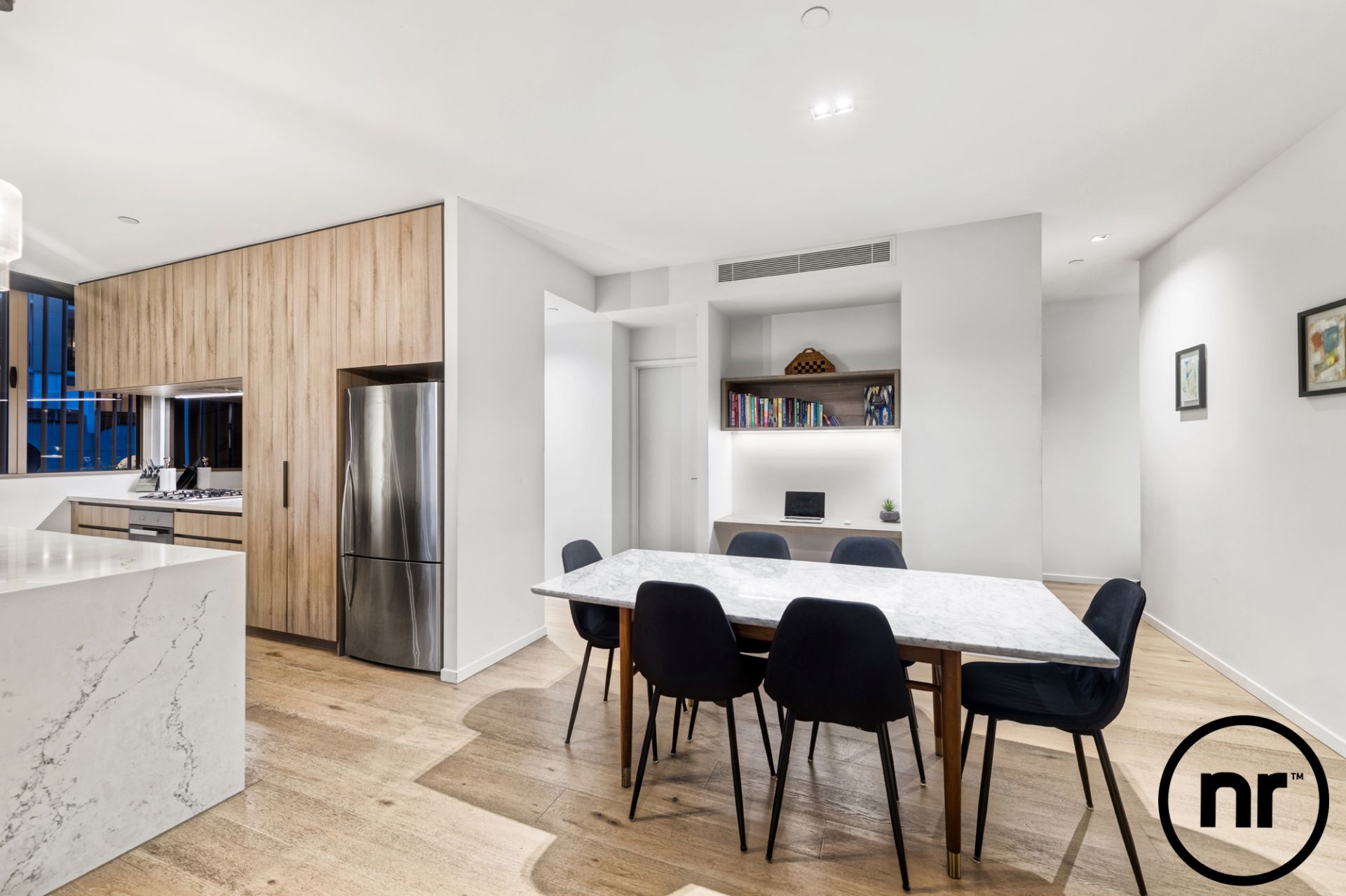 Back inside, comfort is at a premium as a cool river breeze (as well as ducted air-conditioning) ensure pleasant living conditions and timber floors guide you past the study nook in between bedrooms at opposite ends of the home. On par with the executive hotel suite of your dreams, the master boasts a scintillating ensuite and walk-in wardrobe whilst the second bedroom also features a walk-in wardrobe and direct access to a bathroom.