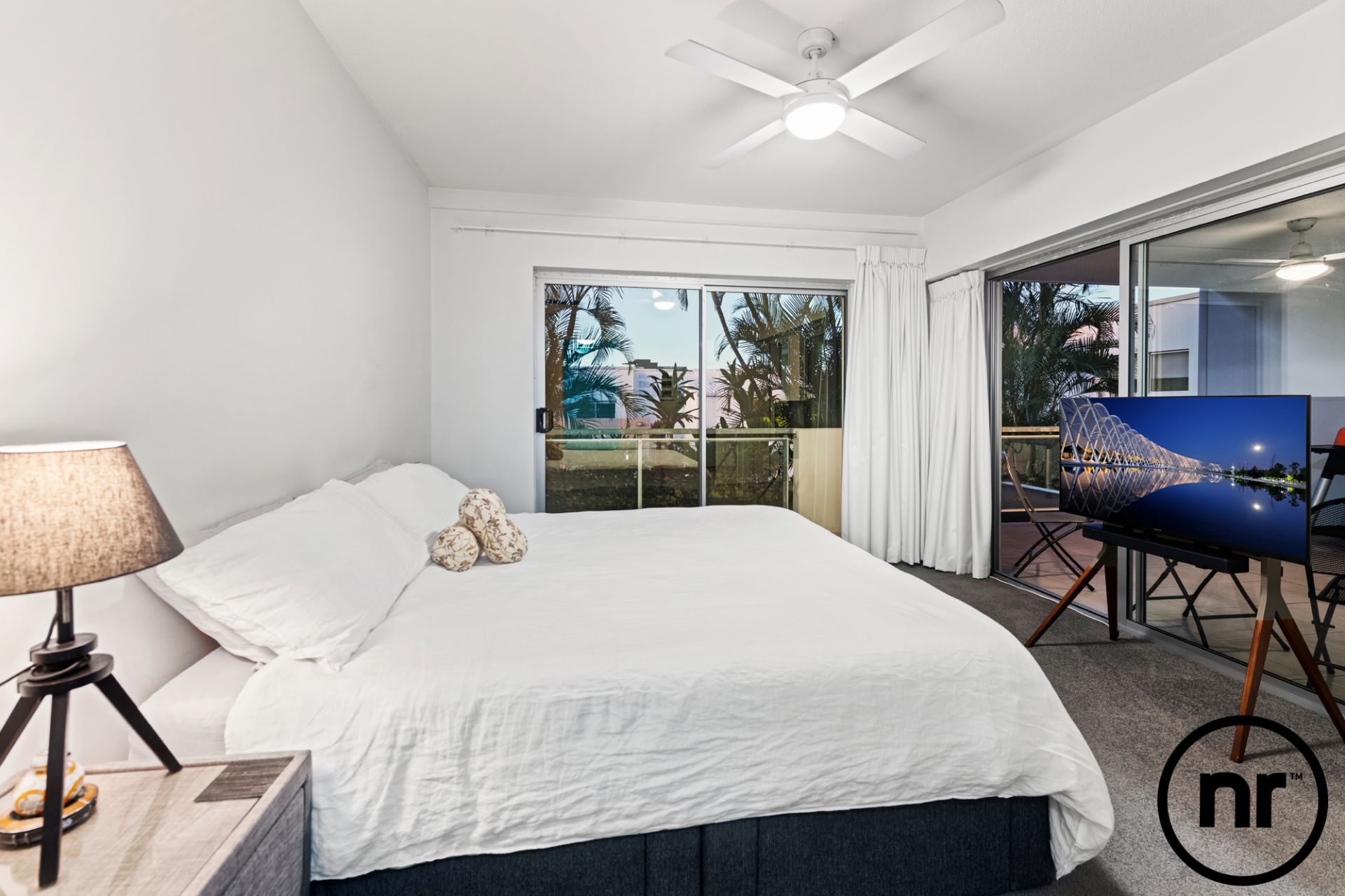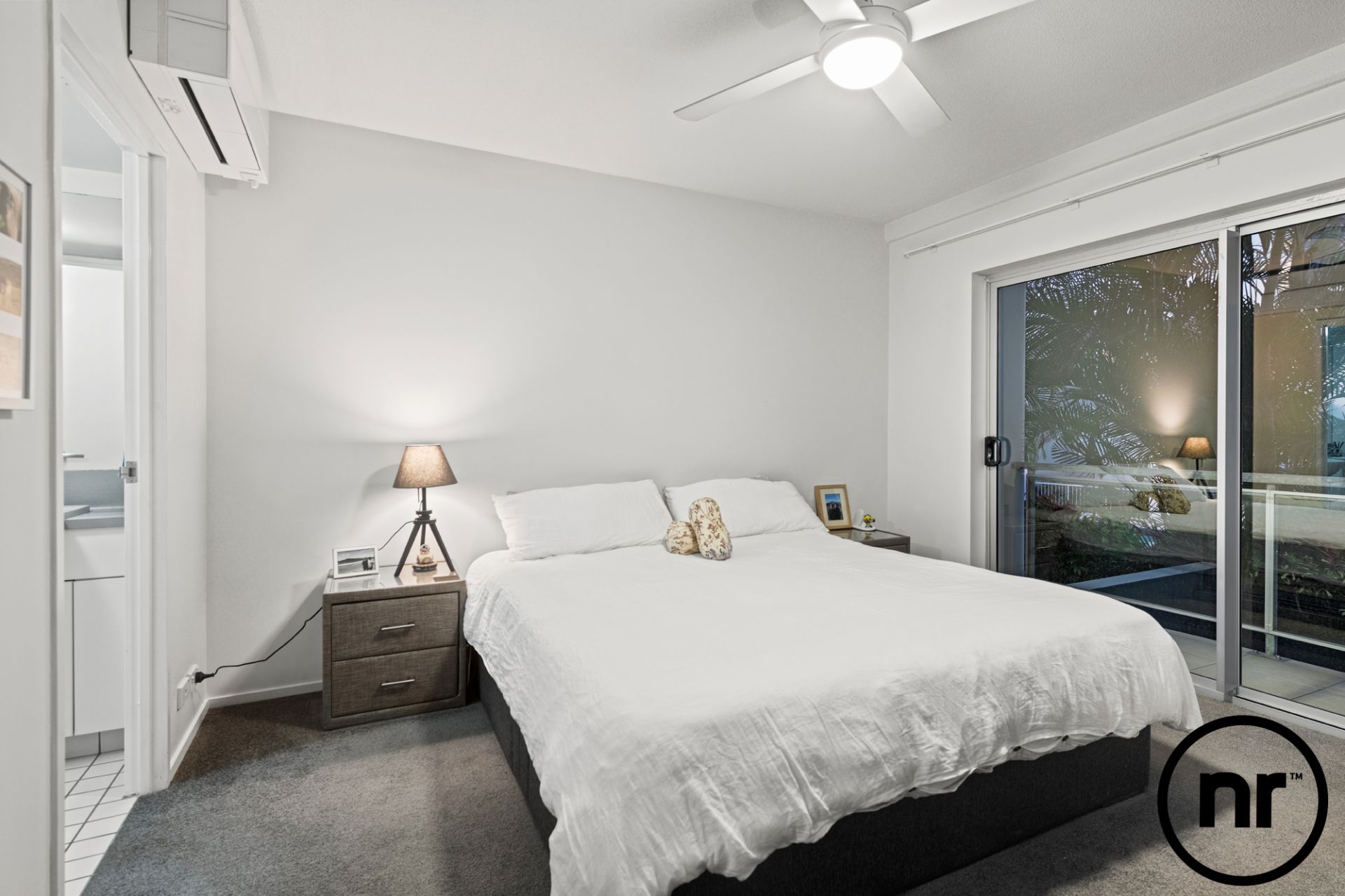 Progressing past the study nook on your left and through the living room, you’ll arrive at the large entertainment balcony. Overlooking the leafy surrounds and complex swimming pool, there’s no better place to unwind. Back inside, at opposite ends of the home can be found two bedrooms. A haven of peace and tranquillity, the master boasts a walk-in wardrobe, brand new block out curtains, air-conditioning, new remote controlled ceiling fans and an ensuite with a double vanity and double shower. Not to be outdone, the second bedroom also has new remote controlled ceiling fans alongside mirrored built-in wardrobes.