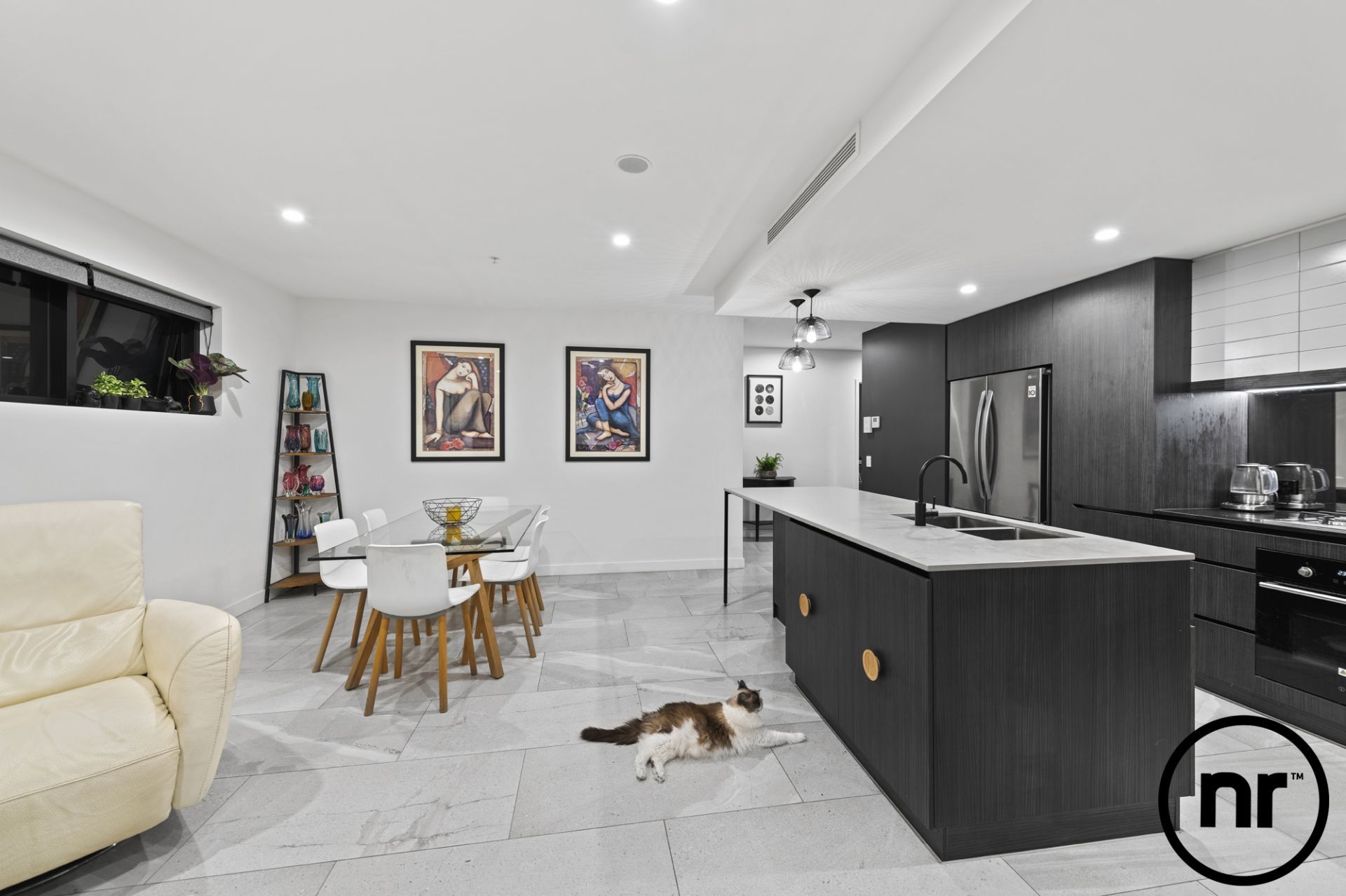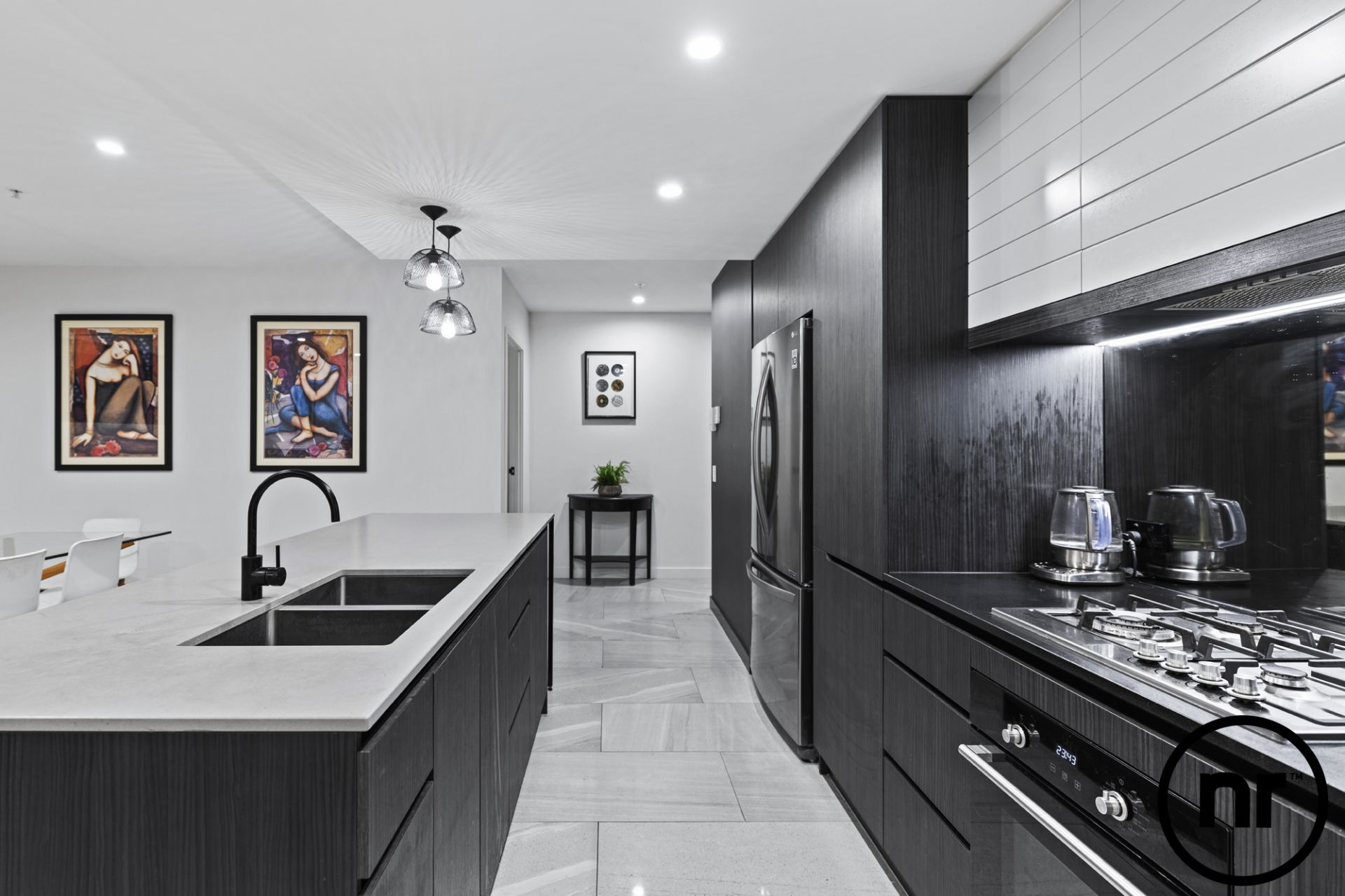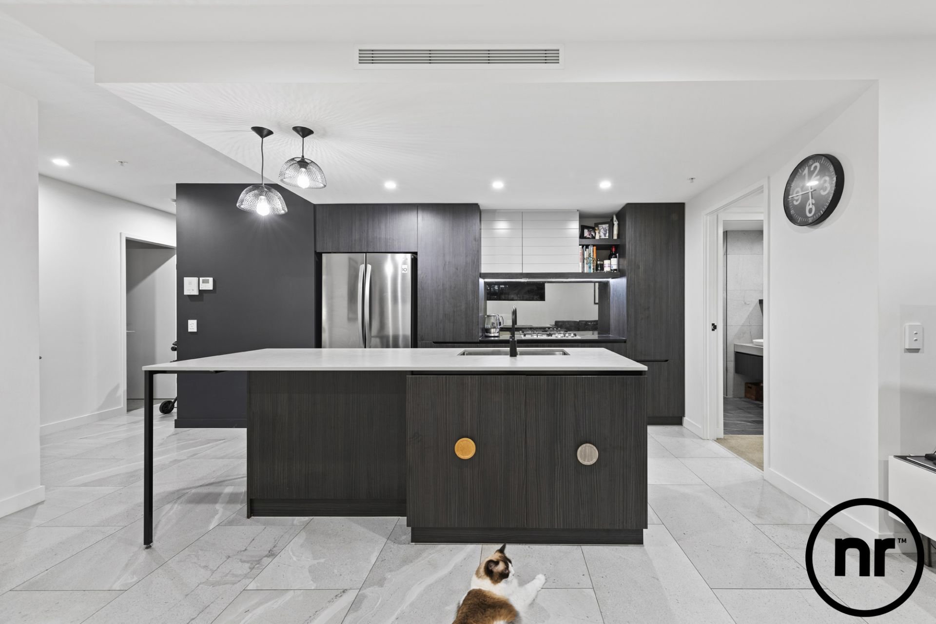 Occupying a coveted north-facing building position, unit 403 is set in a sprawling 127sqm environment with an abundance of world-class amenities. As you enter the property, tiled flooring steers you down the hallway and opens up to reveal a lavish kitchen. Incorporating a lengthy island benchtop as a focal point, other prominent features include stainless steel appliances, gas cooktops, ample storage and black tapware.